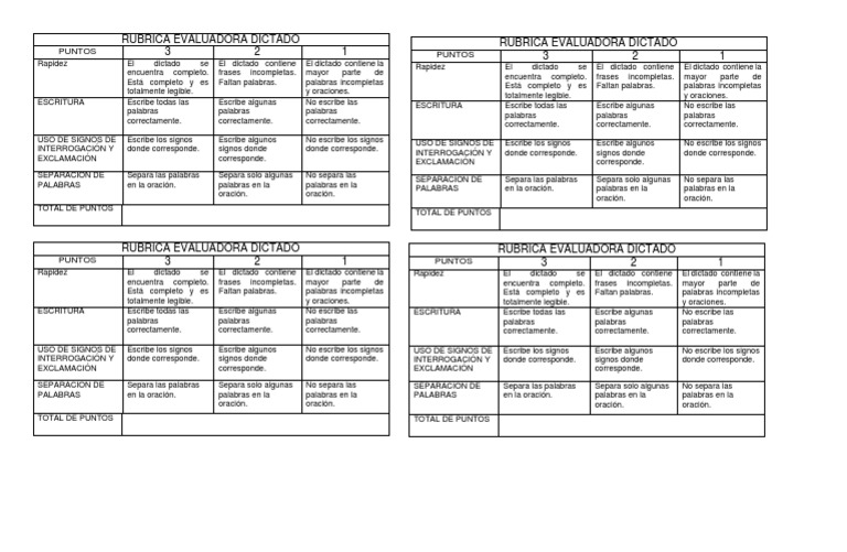 RUBRICA EVALUADORA DICTADO RUBRICA EVALUADORA DICTADO