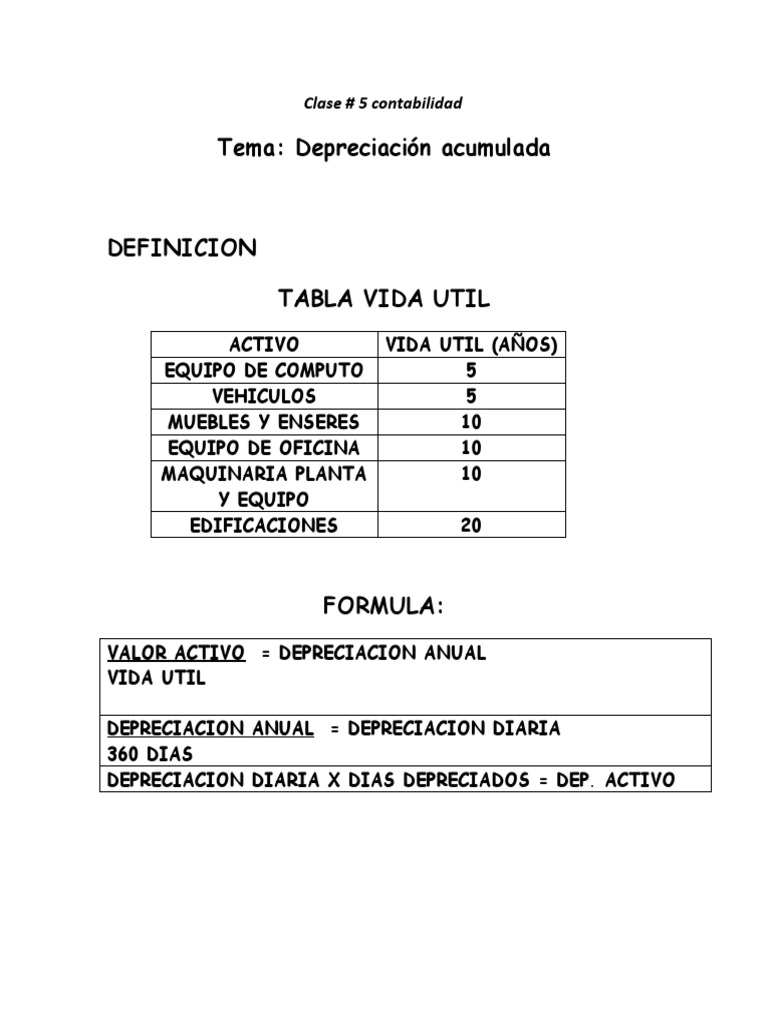 DEPRECIACION DIARIA X DIAS DEPRECIADOS = DEP. ACTIVO