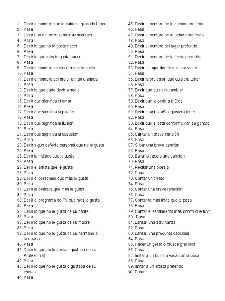 23. Decir algún defecto personal que no le gusta 67. Silbar una breve canción