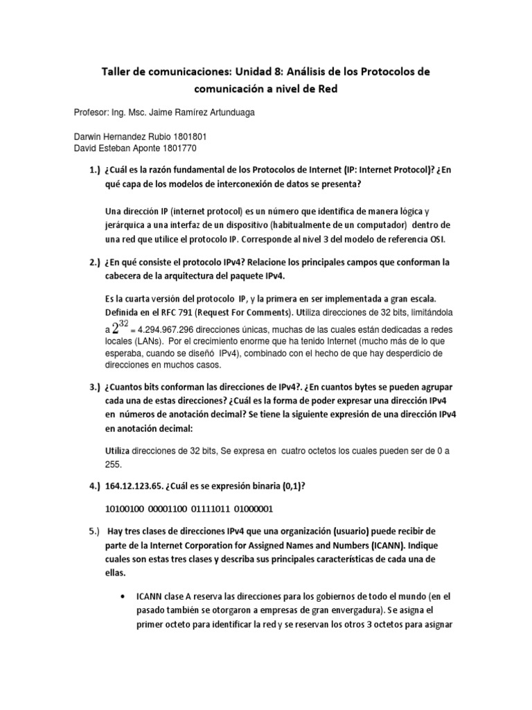 Taller de comunicaciones: Unidad 8: Análisis de los Protocolos de