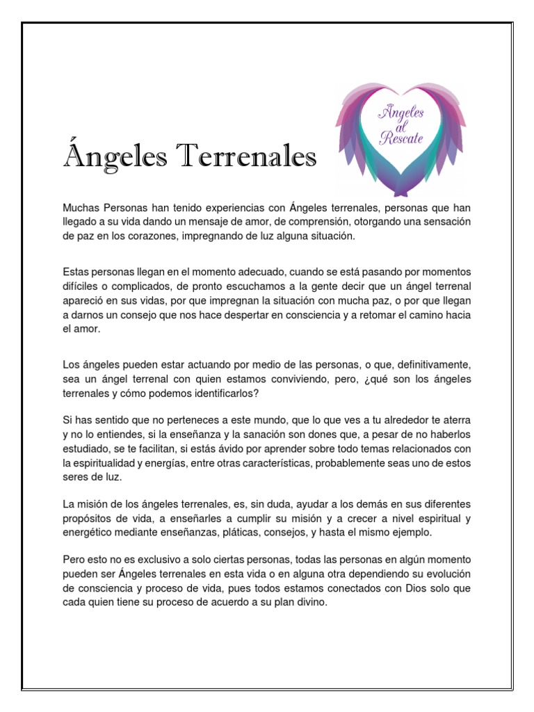 de su vida y sus decisiones, tu eres Angel Terrenal.