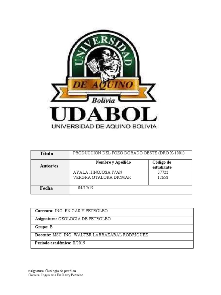 Título PRODUCCION DEL POZO DORADO OESTE (DRO X-1001)
