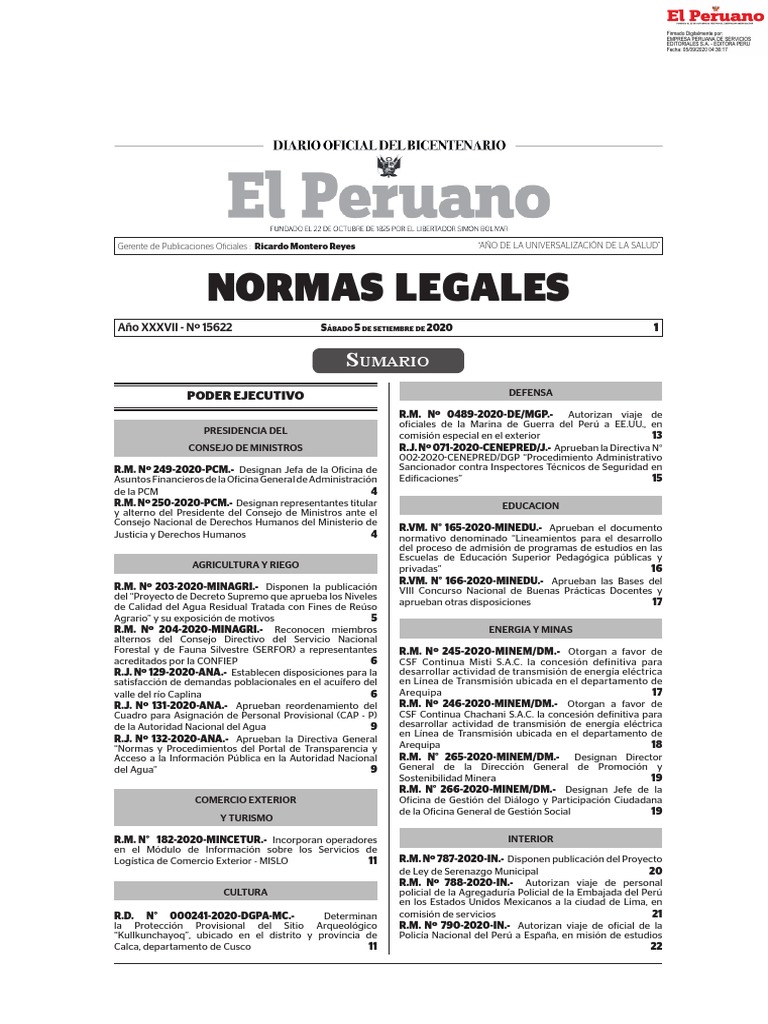 4 NORMAS LEGALES Sábado 5 de setiembre de 2020 / El Peruano