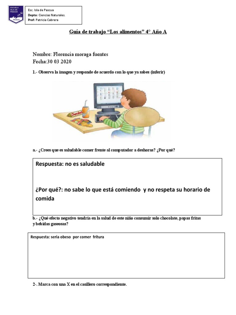 a.- ¿Crees que es saludable comer frente al computador a deshoras? ¿Por qué?