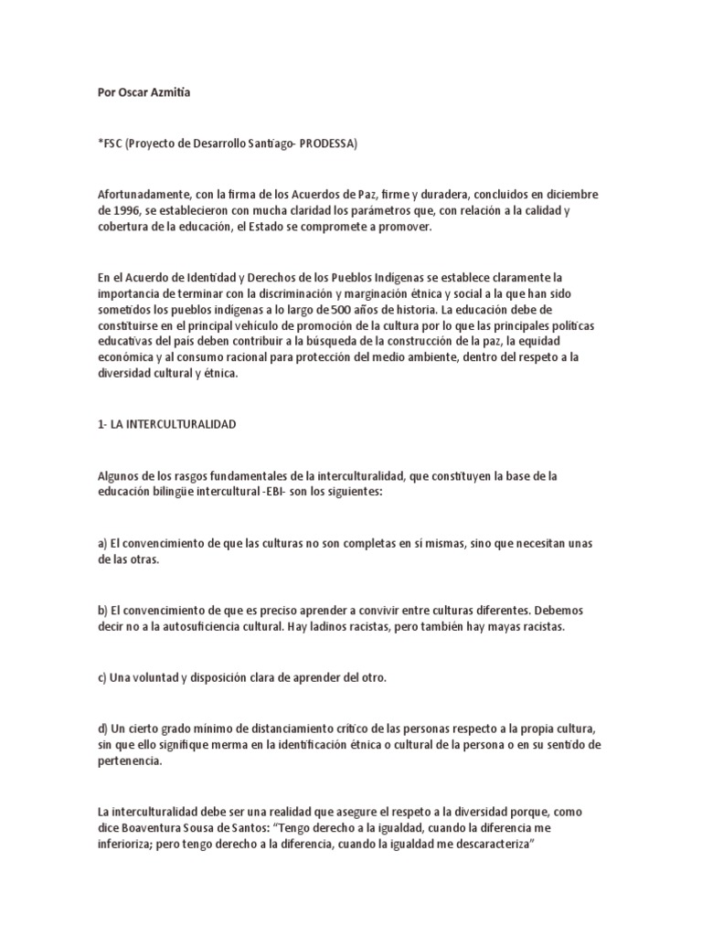 interculturalidad, ésta es viable hoy día en Guatemala siempre que se acierte en su definición y en