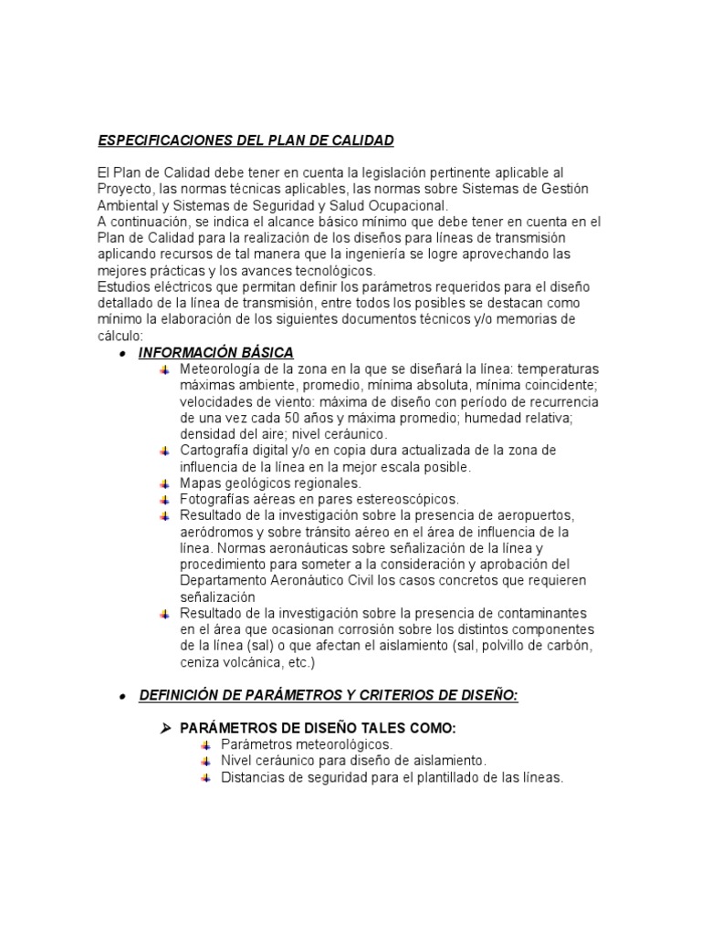 Plan de Calidad para la realización de los diseños para líneas de transmisión