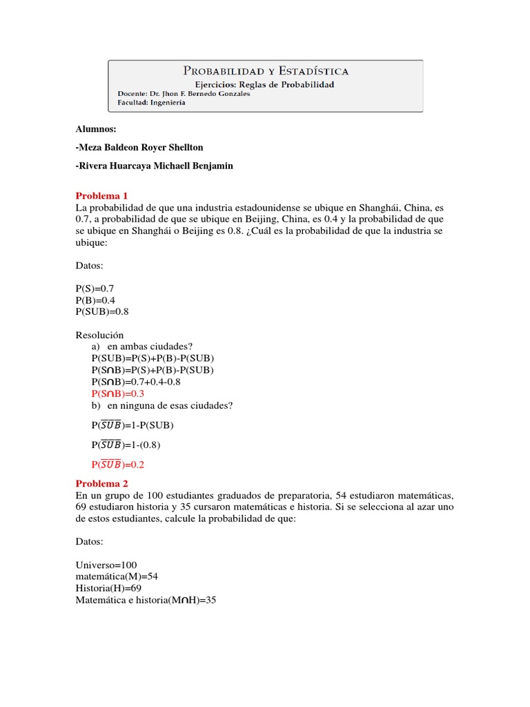 admitido en la universidad A en 0.8; a la universidad B en 0.75, en al menos una de