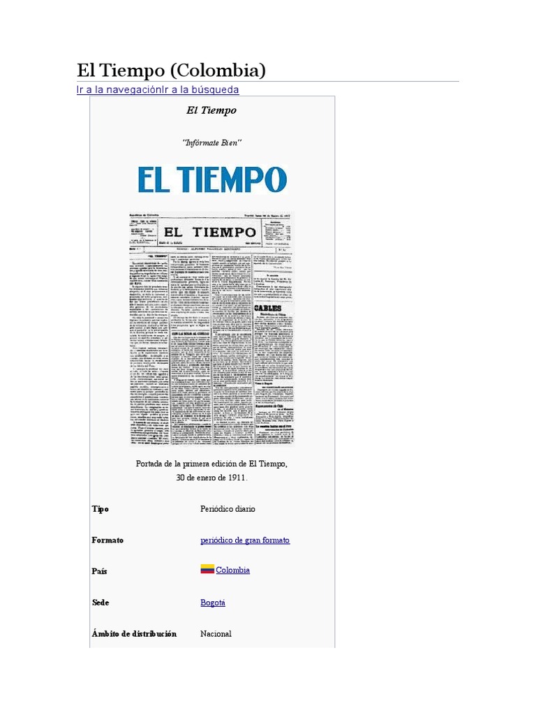 El Tiempo es un periódico colombiano fundado el 30 de