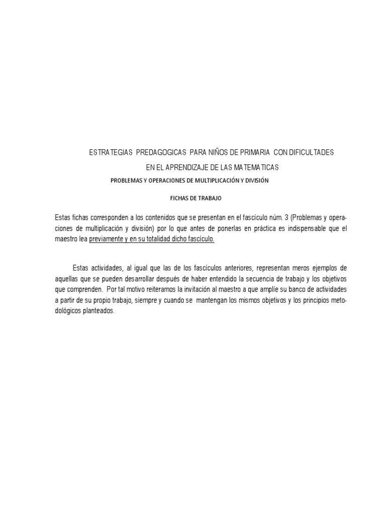 Estas fichas corresponden a los contenidos que se presentan en el fascículo núm. 3 (Problemas y opera-