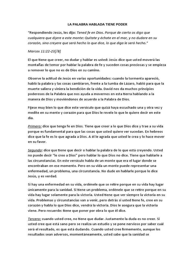 corazón. Confiéselo y lo que pida le será hecho. La palabra de Dios hablada por su boca