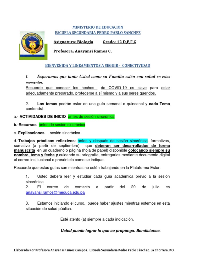 Elaborada Por Profesora Anayansi Ramos Campos. Escuela Secundaria Pedro Pablo Sánchez. La Chorrera, PO.