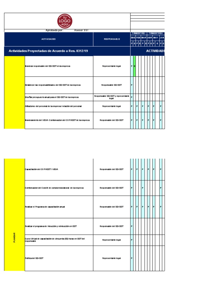 Responsable del SG-SST P P P P P P