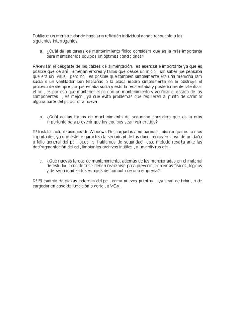 el pc , es por eso que mantener el pc con un mantenimiento y verificar el estado de los