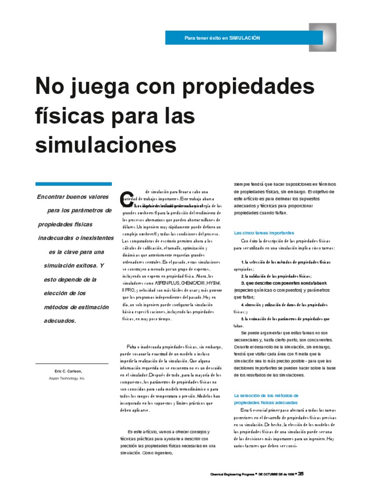 de simulación para llevar a cabo una de propiedades físicas, sin embargo. El objetivo de