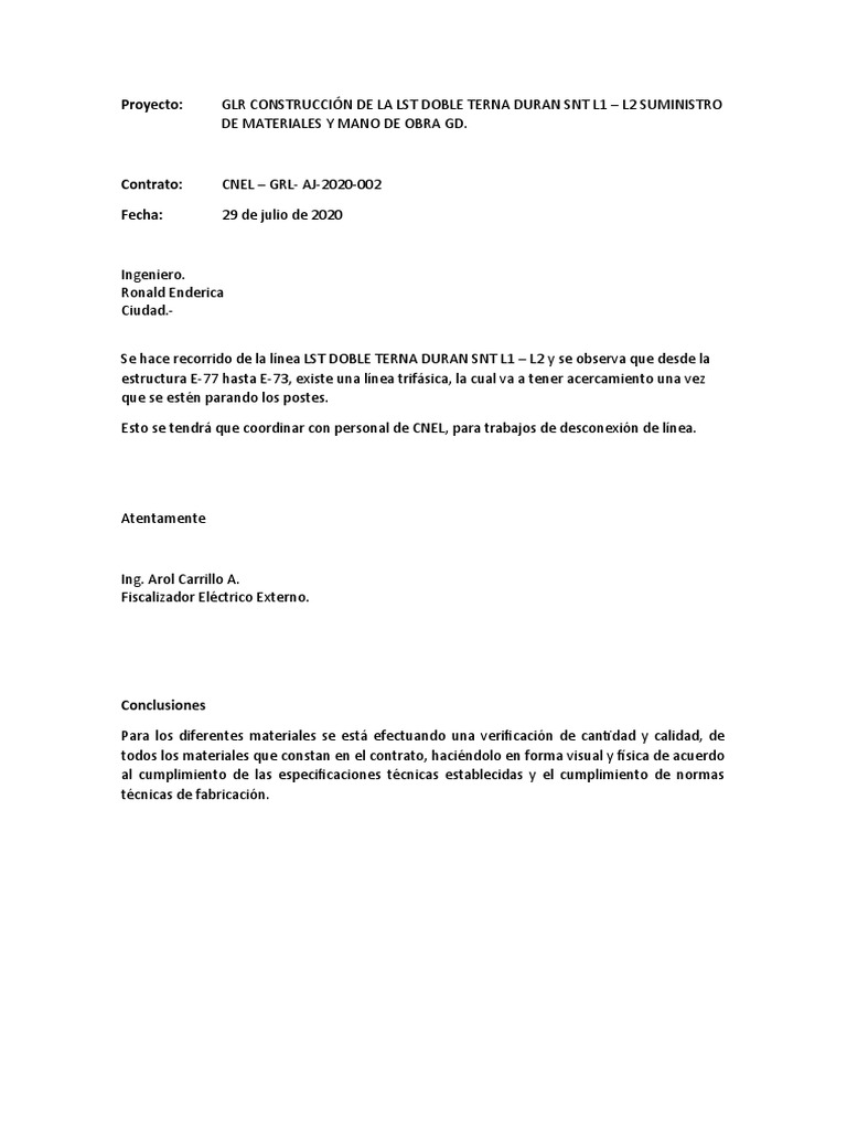 Proyecto: GLR CONSTRUCCIÓN DE LA LST DOBLE TERNA DURAN SNT L1 – L2 SUMINISTRO