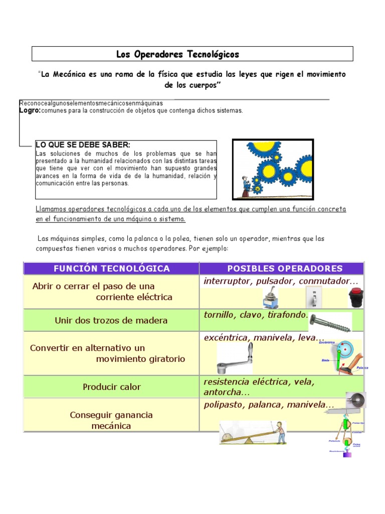 operadores mecánicos convierten la fuerza en movimiento.