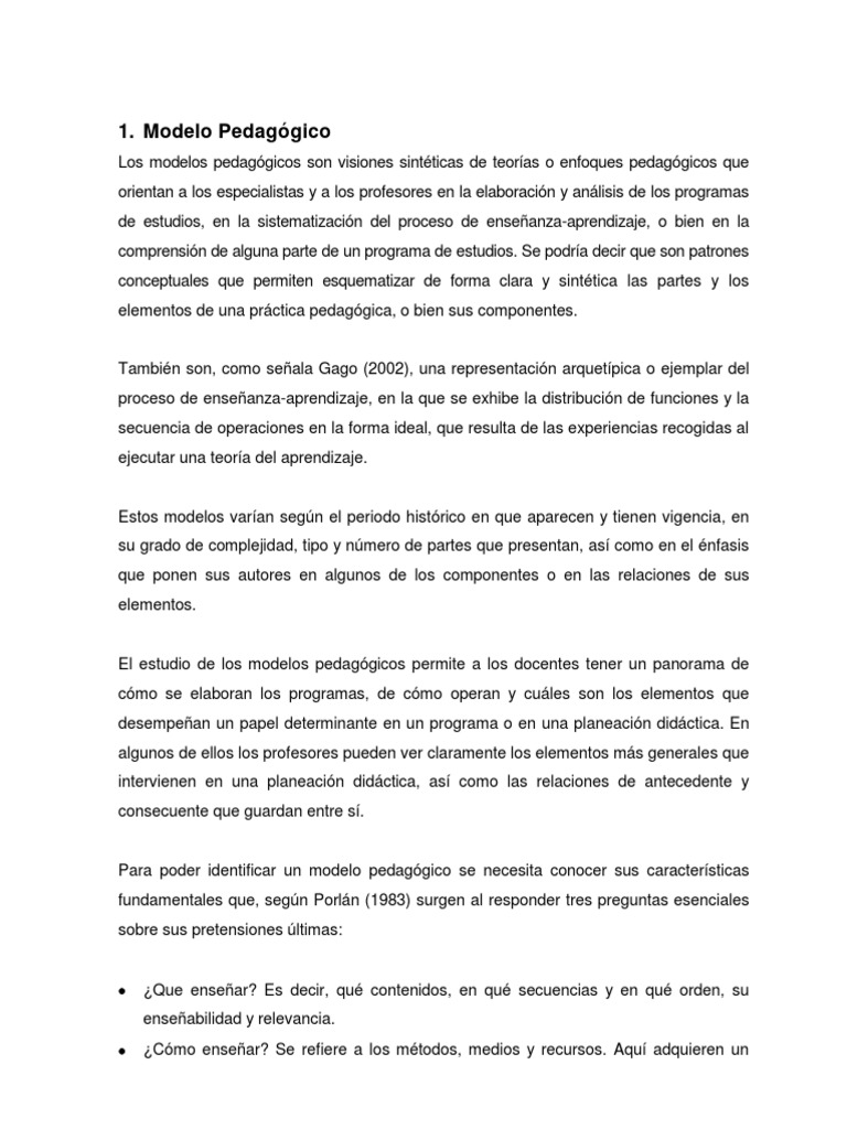 Los modelos pedagógicos son visiones sintéticas de teorías o enfoques pedagógicos que