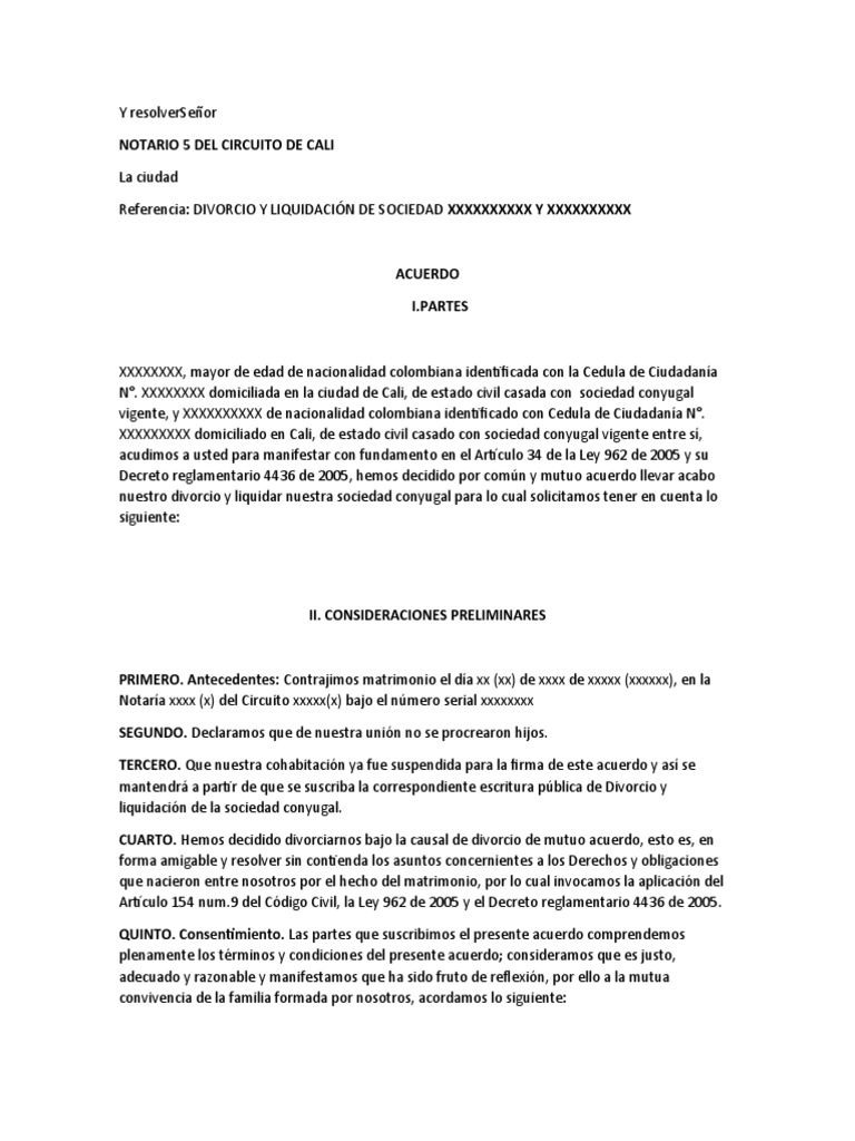 nuestro divorcio y liquidar nuestra sociedad conyugal para lo cual solicitamos tener en cuenta lo