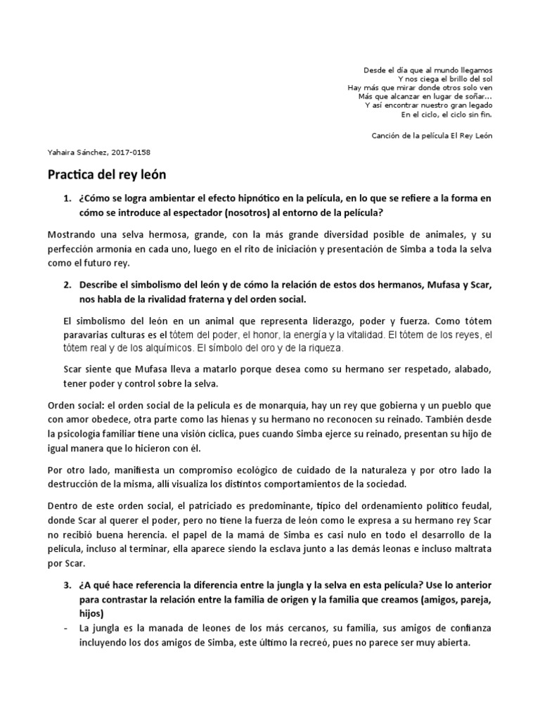 2. Describe el simbolismo del león y de cómo la relación de estos dos hermanos, Mufasa y Scar,