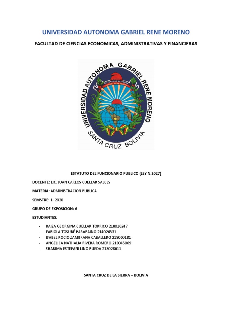 ESTATUTO DEL FUNCIONARIO PUBLICO (LEY N.2027)