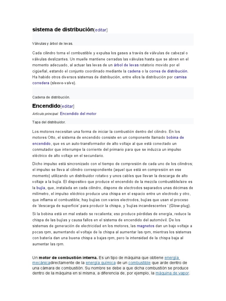 del cilindro. En los motores Otto, el sistema de ignición consiste en un