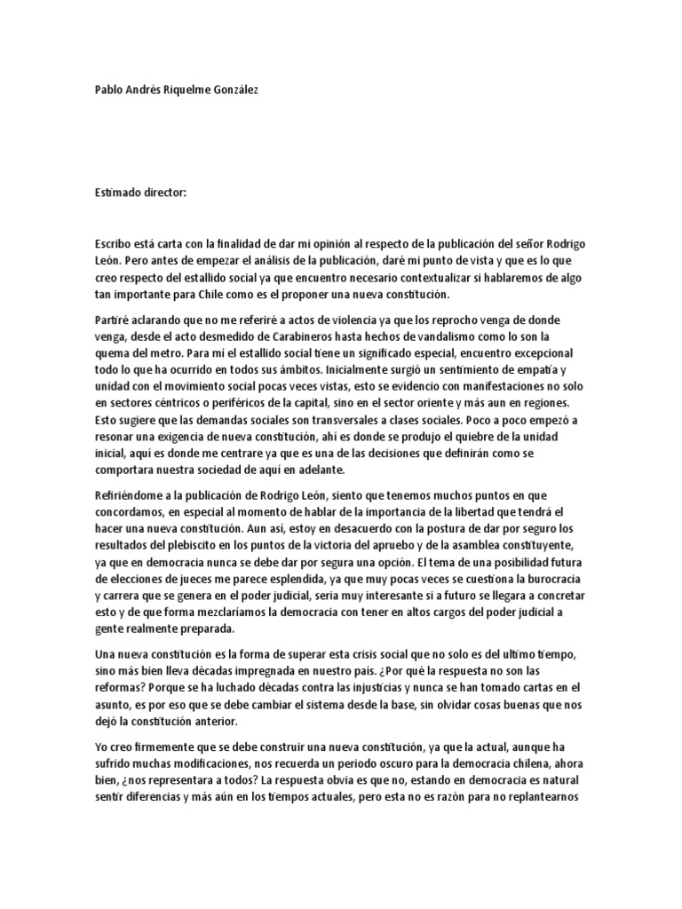 hacer una nueva constitución. Aun así, estoy en desacuerdo con la postura de dar por seguro los