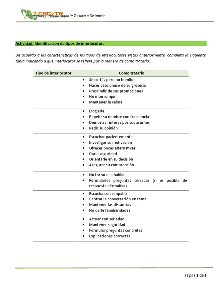 Actividad: Identificación de tipos de interlocutor.