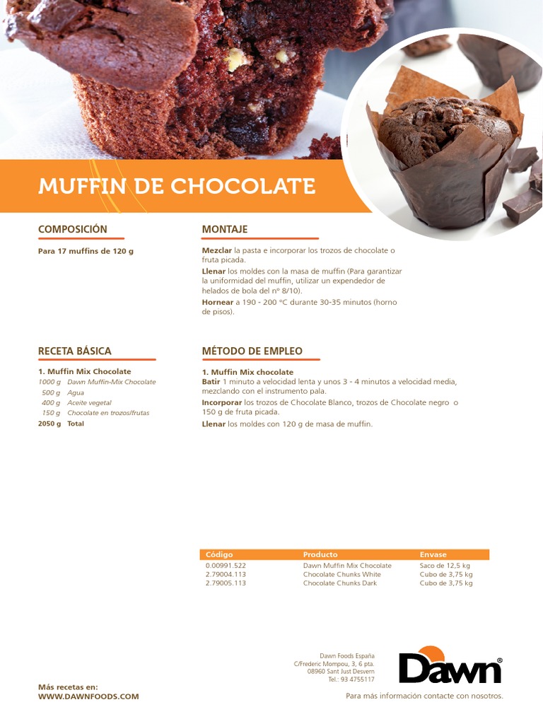 0.00991.522 Dawn Muffin Mix Chocolate Saco de 12,5 kg