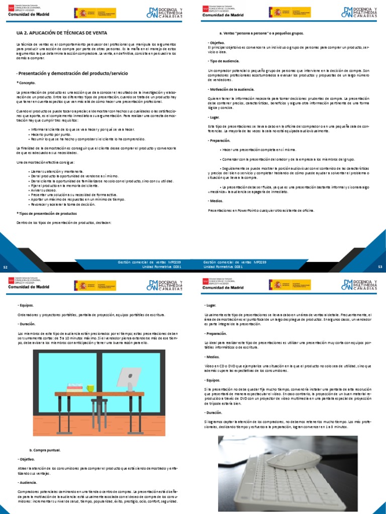 - Presentación y demostración del producto/servicio compradores profesionales acostumbrados a evaluar los productos y propuestas de un largo número