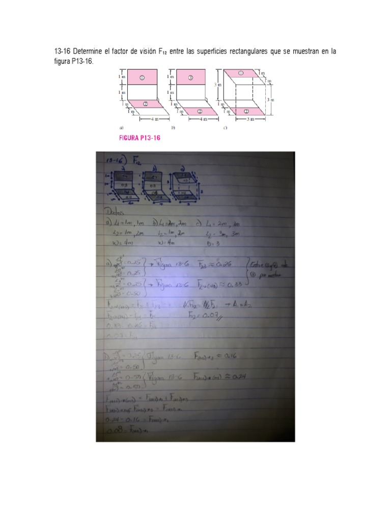 13-16 Determine el factor de visión F 12 entre las superficies rectangulares que se muestran en la