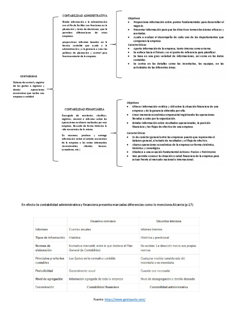 En efecto la contabilidad administrativa y financiera presenta marcadas diferencias como lo menciona Alcarria (p.17)