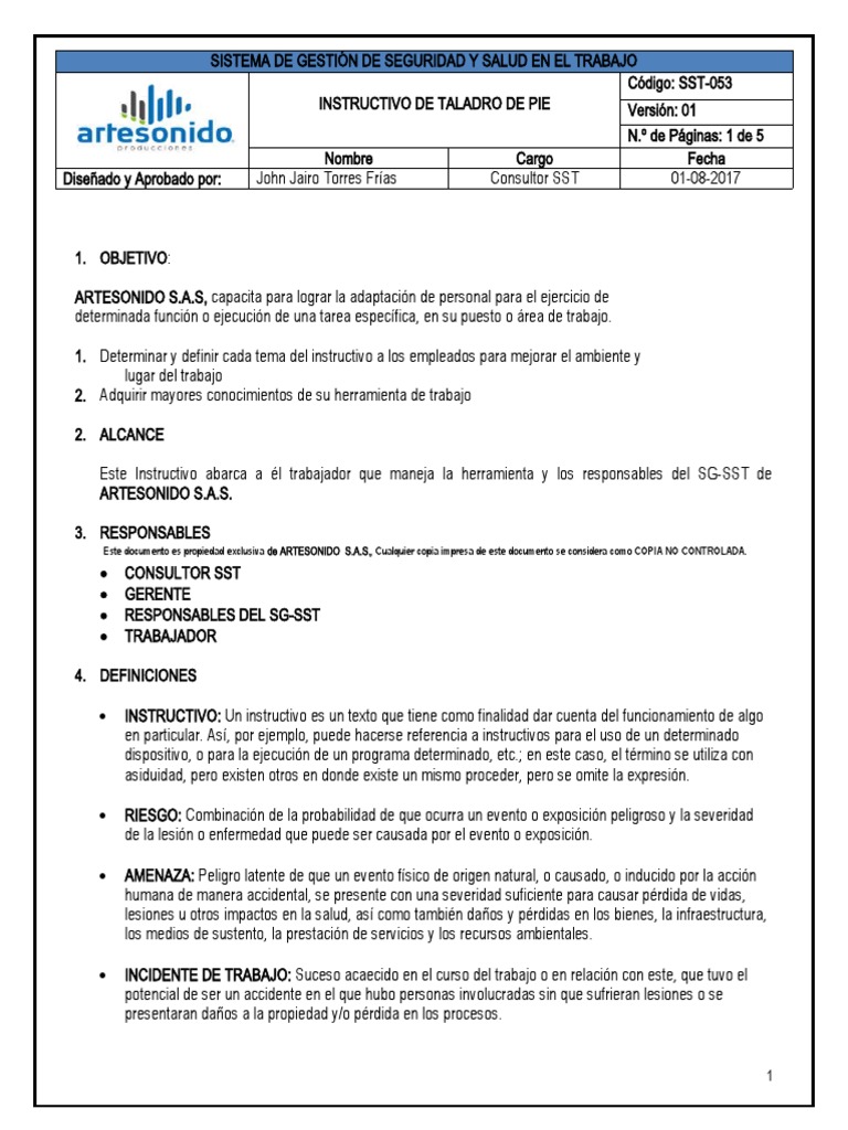INSTRUCTIVO DE TALADRO DE PIE Versión: 01