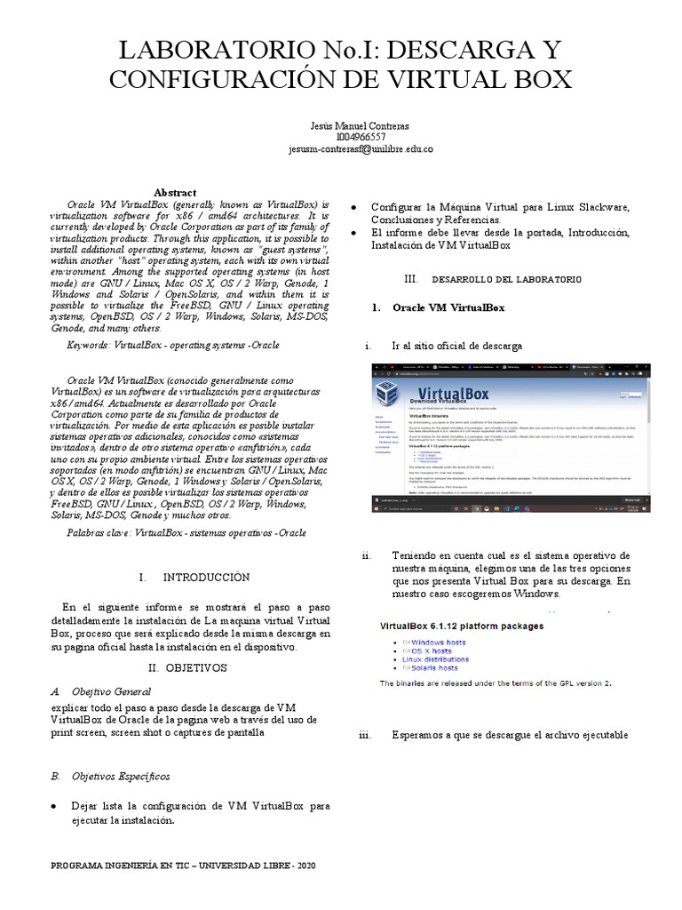 I. INTRODUCCIÓN que nos presenta Virtual Box para su descarga. En