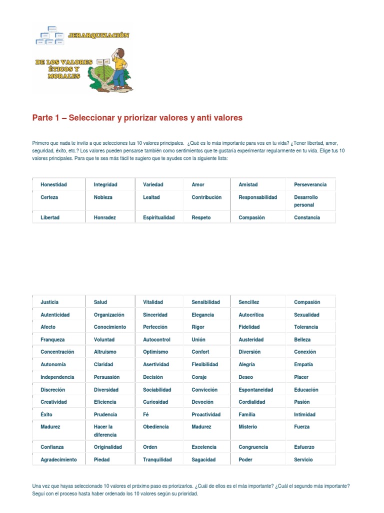 Parte 1 – Seleccionar y priorizar valores y anti valores