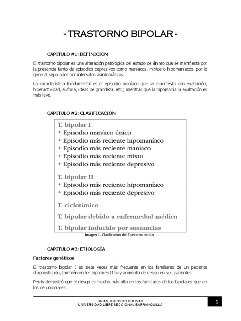 Imagen 1. Clasificación del Trastorno bipolar.