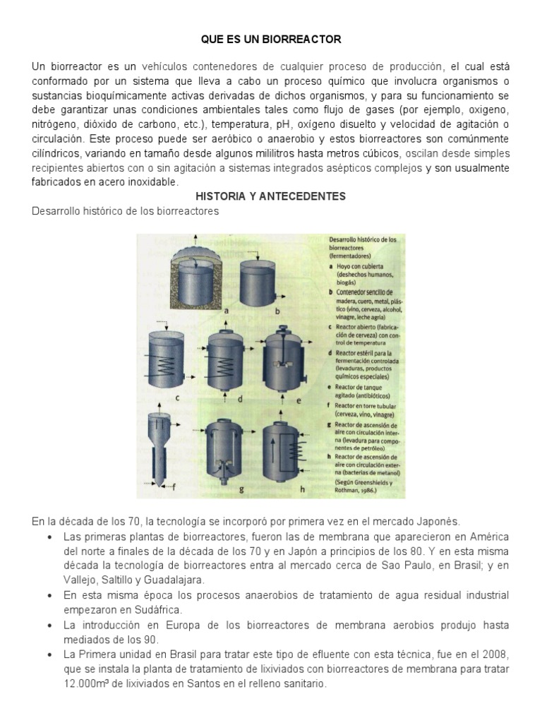 circulación. Este proceso puede ser aeróbico o anaerobio y estos biorreactores son comúnmente