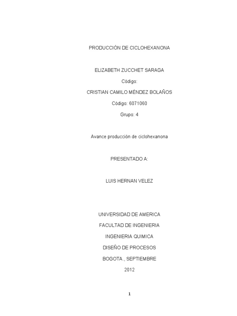 Tabla 1 propiedades temodinamica de la cicloexanona