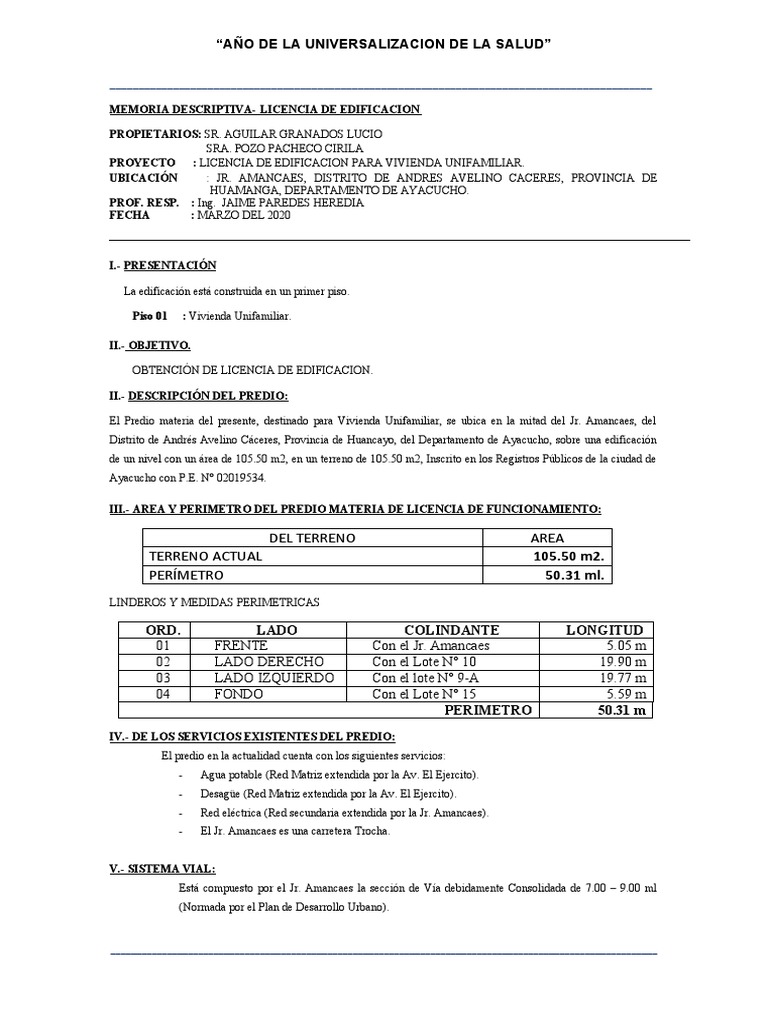 MEMORIA DESCRIPTIVA- LICENCIA DE EDIFICACION