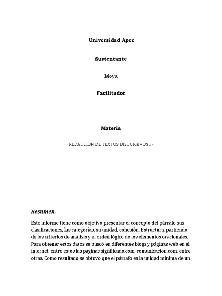 Este informe tiene como objetivo presentar el concepto del pá rrafo sus