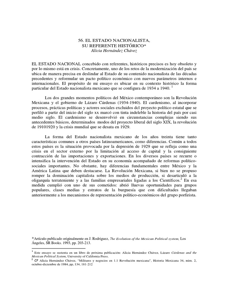 Este ensayo se sustenta en un libro de próxima publicación: Alicia Hernández Chávez, Lázaro Cárdenas and the