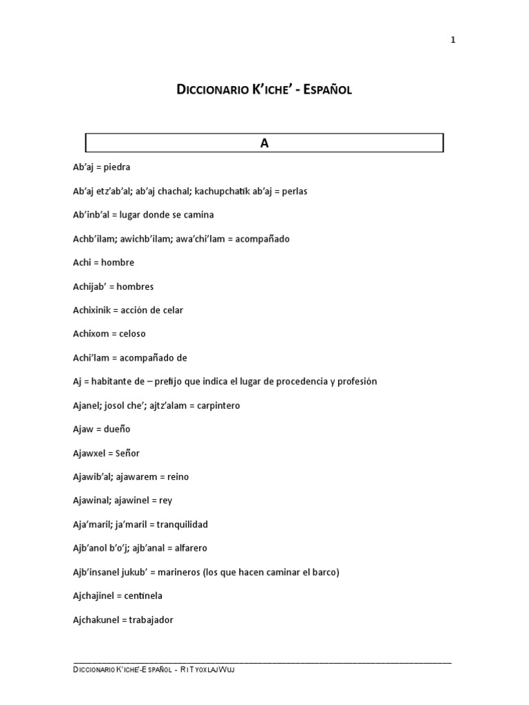 DICCIONARIO K’ICHE’-ESPAÑOL - RI TYOXLAJ WUJ