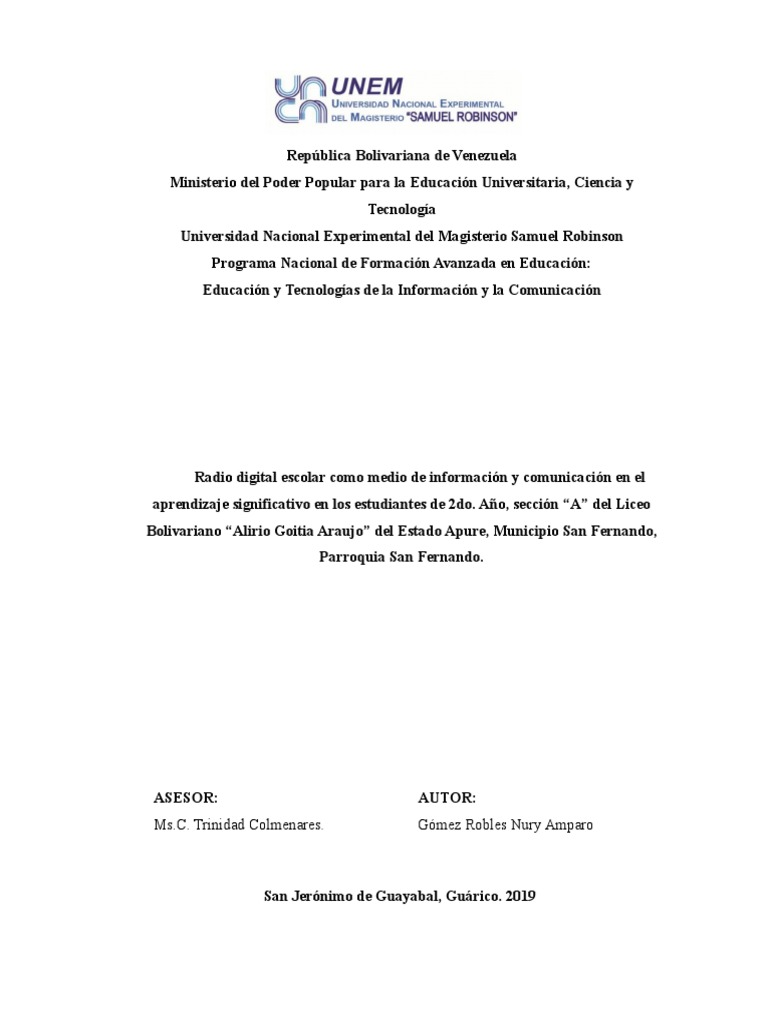 Ms.C. Trinidad Colmenares. Gómez Robles Nury Amparo