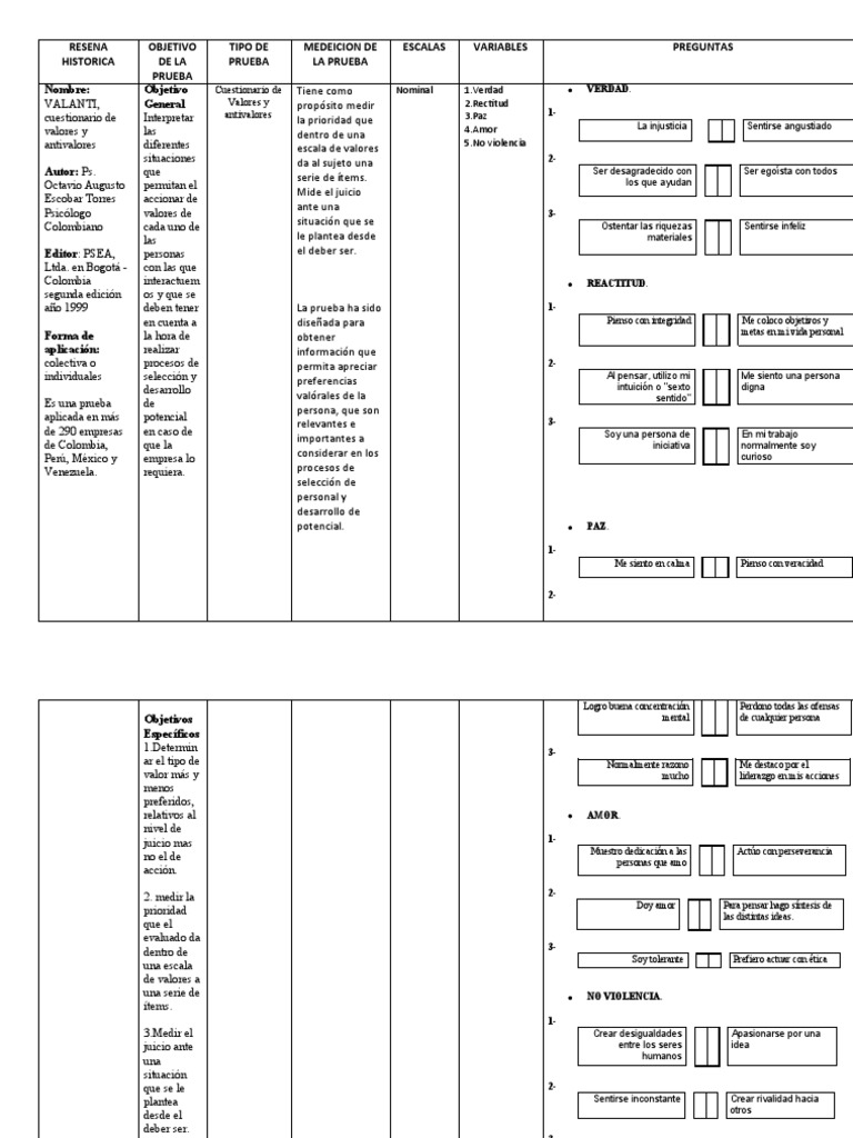 cuestionario de Interpretar antivalores 3.Paz 1-