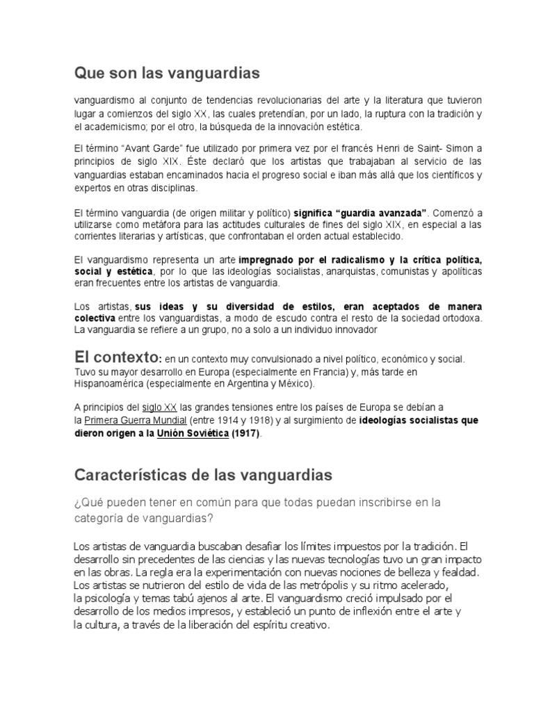 vanguardismo al conjunto de tendencias revolucionarias del arte y la literatura que tuvieron