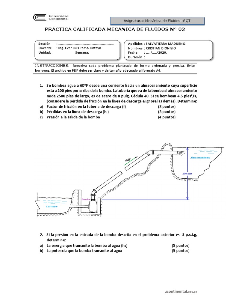 PRÁCTICA CALIFICADA MECÁNICA DE FLUIDOS N° 02