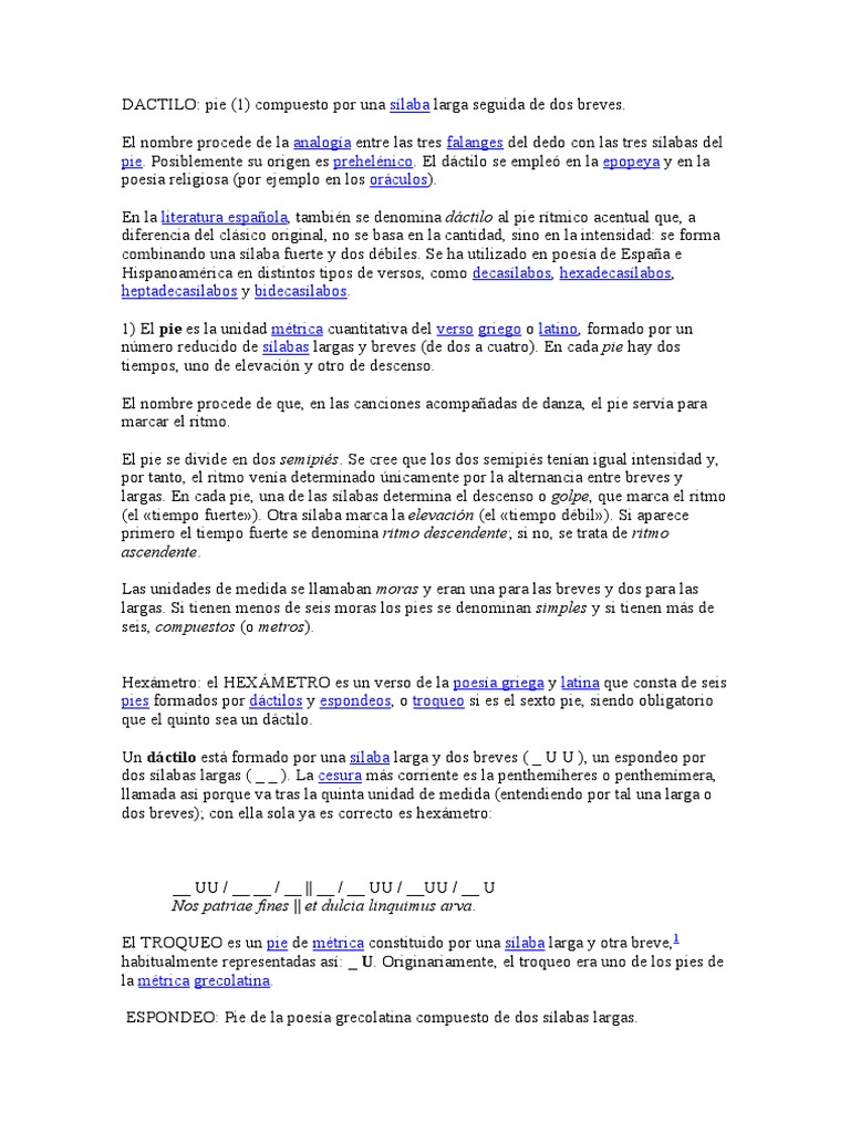 pie. Posiblemente su origen es prehelénico. El dáctilo se empleó en la epopeya y en la