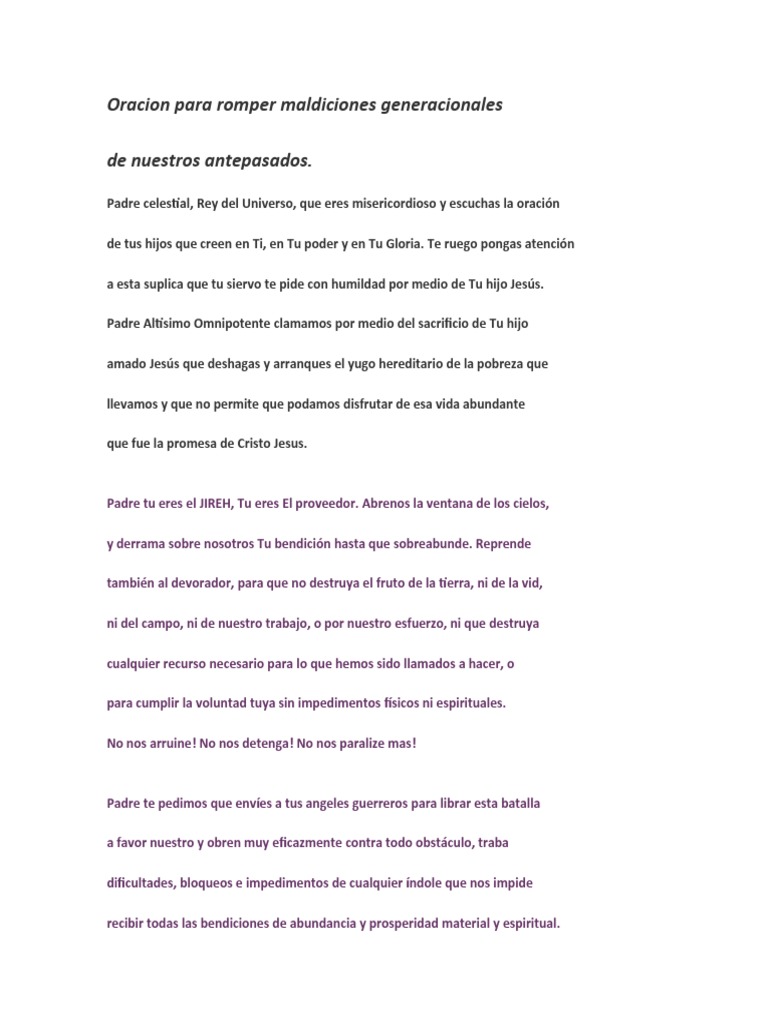 deshago y destruyo todas las maldiciones que nos han alcanzado debido