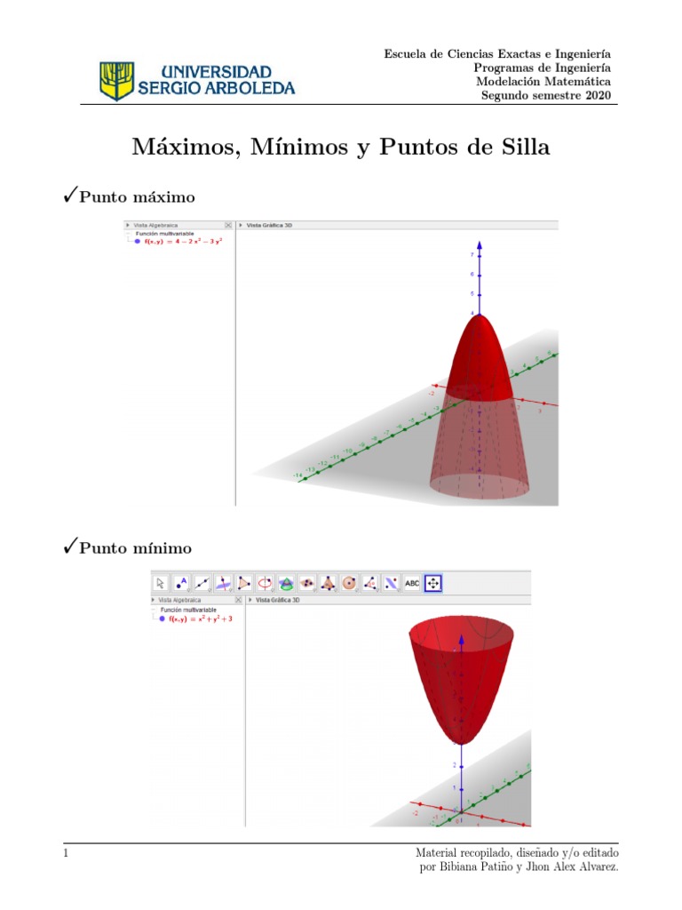 Máximos, Mı́nimos y Puntos de Silla