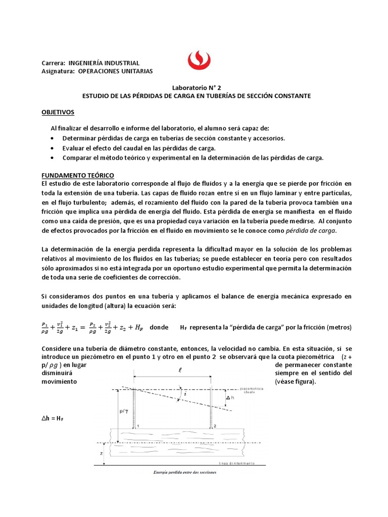 El estudio de este laboratorio corresponde al flujo de fluidos y a la energía que se pierde por fricción en