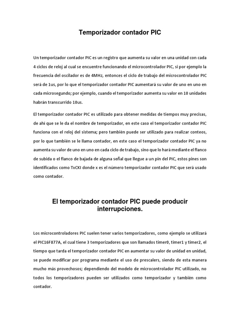 Un temporizador contador PIC es un registro que aumenta su valor en una unidad con cada